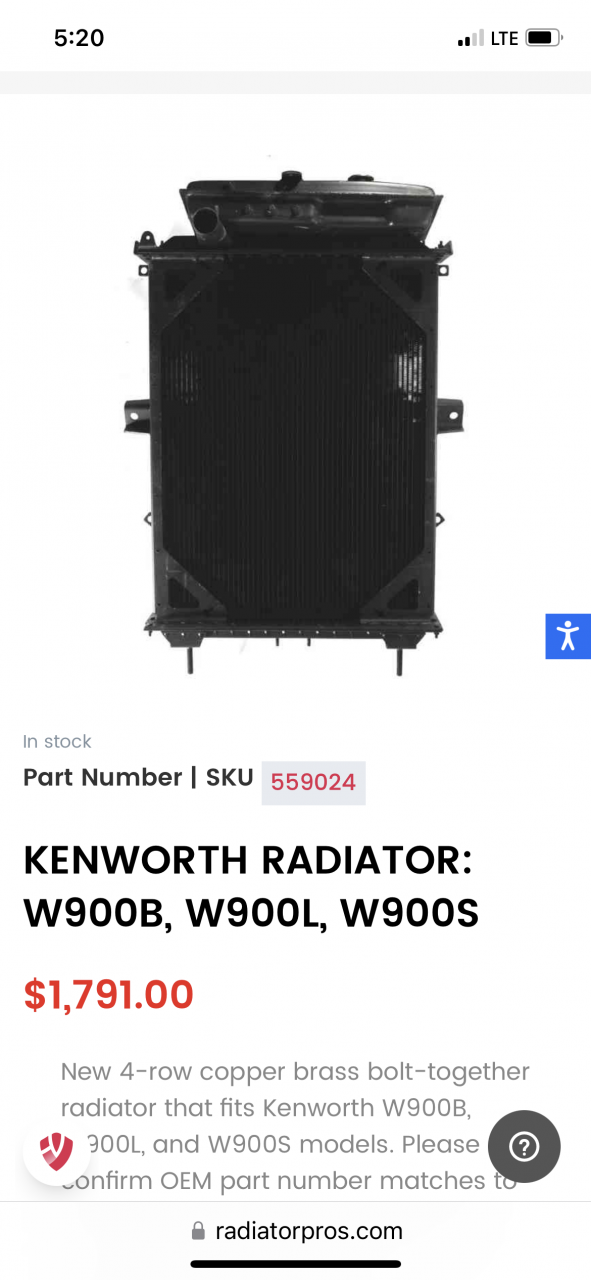 Gonna be ordering a new radiator soon and I think I’ve got one located through American Radiator. My old radiator support bushing were absolutely deteriorated to ####. So, now I’m trying to determine the correct support bushings for this radiator. I’ll post some pics of the bushing choices that 4 States says are all applicable for a W900L of my vintage. I’m saying two of the three are not correct.