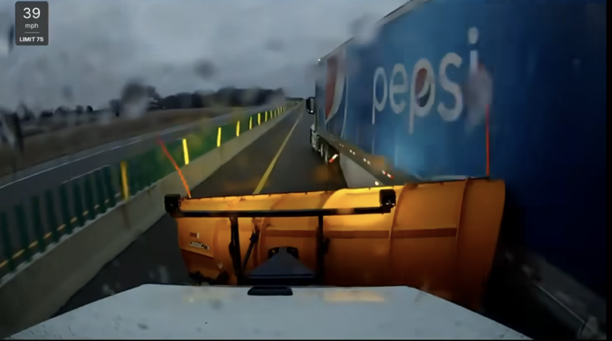 Dash cam shows truck cutting off and striking snowplow in Oklahoma