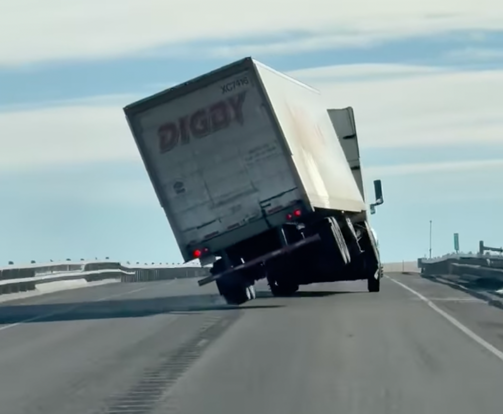 In the clip shared by local outlet KULR8 News, you can see the wind lifting the semi trailer’s wheels, nearly topping the truck as it travels on the roadway. The driver is able to recover, but the near blowover sends the semi into the wrong lane of traffic. Fortunately, a fellow trucker was able to slow and the driver was able to maneuver back into the correct lane.